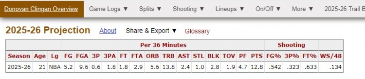 2025-10-21 17:56:57数据网站预测克林根新赛季数据:每36分钟12.8分13.8板2.8帽