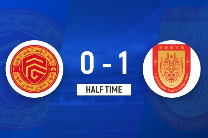 上半场比赛结束,广西平果0-1重庆铜梁龙。