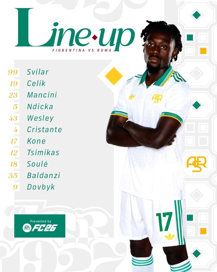 2025-10-06 00:29:29罗马客战佛罗伦萨首发:齐米卡斯、克里斯坦特先发,多夫比克出战